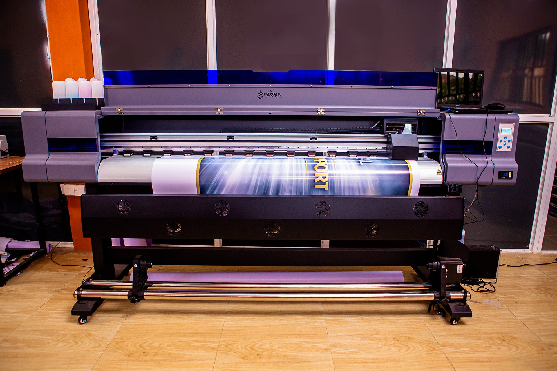 A type of printer that can produce prints larger than standard office printers. This machine typically handle paper widths starting from 24 inches and can extend to 10 feet wide, making them suitable for large-scale and oversized graphics and signage. It is a printing machine that uses inkjet or electrostatic technology for applications in advertising, architecture, and decor, offering high-resolution, versatile, and durable outputs for creating banners, wraps, blueprints, and posters. The 6ft gives the company the advantage of printing intricate letters and designs.